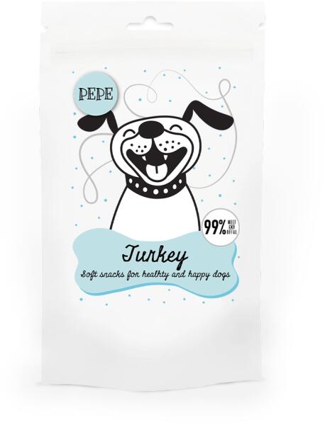 Paka Zwierzaka Pepe Mini Chunkies pulyka 80g - Termékleírás Frissen elkészített pulykahúsból és pulyka belsőségekből készült, 8 mm x 8 mm-es, apró, puha darabok. A hús európai termelésből származik (tisztelettel, egészségügyileg és állatjóléti szempontok figyelembevételével nevelt). Természetes finomság, amely kiváló kiegészítője az étkezéseknek minden méretű
