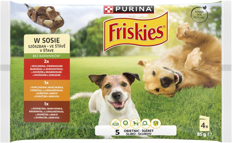 Összetevők: Hús és állati származékok (melyből csirke 4%) Gabonafélék Hal és halszármazékok Zöldségek (0,8% dehidratált sárgarépa, egyenértékű 7,2% sárgarépával) Ásványi anyagok Különféle cukrok Etetési útmutató: Az etetési útmutatót lásd a csomagoláson. Az etetési útmutatóban szereplő mennyiségek mérsékelt aktivitású kölyökkutyák igényeinek feleln