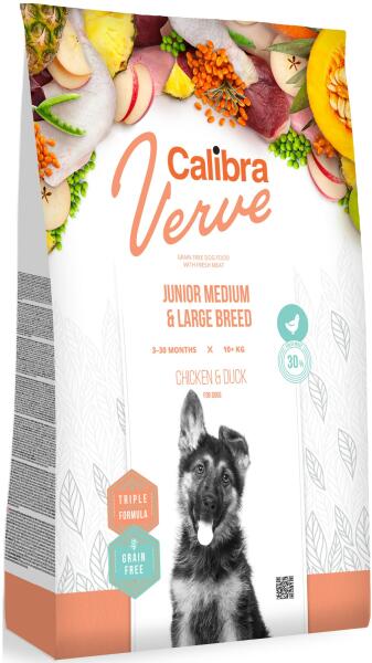 Gyártó: Calibra Modell: Dog Verve GF Junior Medium Large Chicken & Duck 12 kg Leírás: Alkalmas 3 és 30 hónapos kor közötti kutyák számára. Gabonamentes formula az emésztés elősegítésére Nem tartalmaz gabonaféléket, glutént, kukoricát, mesterséges színezéket vagy GMO-kat. 75% állati fehérjét tartalmaz Vitaminok és ásványi anyagok kombinációja az immunitás, a kut