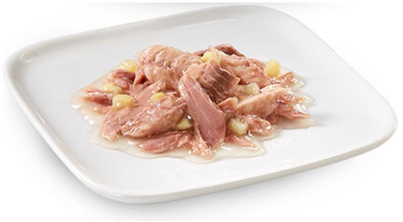 Schesir finom konzerv eledel óceáni halból és honhalból ízletes szószban kistestű kutyafajták számára. a halnak köszönhetően az eledel omega-3 és omega-6 zsírsavakat tartalmaz a bőr és a bunda egészségének védelmére az édesburgonya több béta-karotint tartalmaz, mely fontos antioxidáns, és habár édesebb, a magasabb amilóztartalom lassabb vércukorszint emelkedést oko