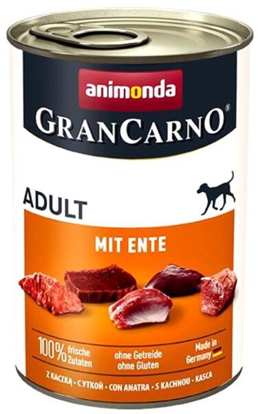 Animonda Grancarno Adult Kacsa 400g – Kutyák számára prémium konzerv Kiegyensúlyo zott táplálkozás felnőtt kutyáknak (1-6 éves korig) Az Animonda Grancarno Adult Kacsa 400g konzerv a felnőtt kutyák számára biztosít ínycsiklandó és tápláló étkezést, 1 és 6 éves kor között. A kiváló minőségű, friss húsok biztosítják a kutyája számára a szükséges tápanyagok
