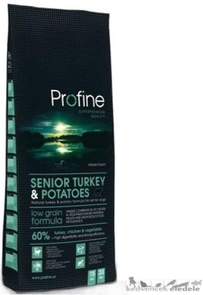 A Profine Senior Turkey & Potatoes egy teljes értékű pulykás száraztáp idős kutyák számára. Kifejezetten idős és öregedő kutyusok táplálkozási igényeinek megfelelően fejlesztett isteni száraztáp. Kiegyensúlyozott fehérje (24%) és zsírtartalom (12%). Ínycsiklandó pulykás-burgonyás ízkombináció. - A pulykahús minőségi fehérjeforrás. Zsírszegény, könnyen em