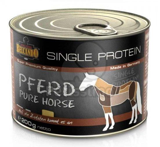 BELCANDO SINGLE PROTEIN szín lóhús konzerv Szuper prémium minőségű táplálék kiegészítő kutyáknak A BELCANDO MIX IT szárazeledellel együtt etetve egy igazán kiegyensúlyozott táplálást biztosít kutyájának. Összetétel:lóhús, -szív, -máj (73%); lóhúslé (27%) Összetétel elemzés:fehérje 12,5 %; zsír 5,0 %; nyershamu 2,0 %; nyersrost 0,3 %; nedvesség 76 % Adalékany