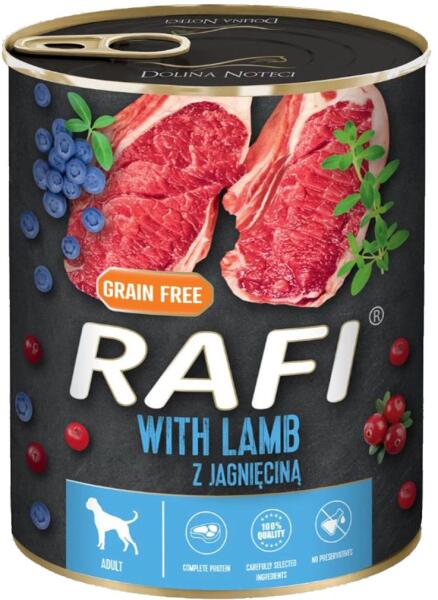A Rafi teljes értékű, gabonamentes nedves eledel konzervdobozban bárányhússal és áfonyával minden fajta felnőtt kutyának. a bárányhús kiváló minőségű fehérje, B-vitaminok és számos értékes mikro- és makroelem forrása, amelyek elengedhetetlenek a felnőtt kutyák szervezetének megfelelő működéséhez. minden szükséges tápanyagot, vitamint és ásványi anyagot tarta