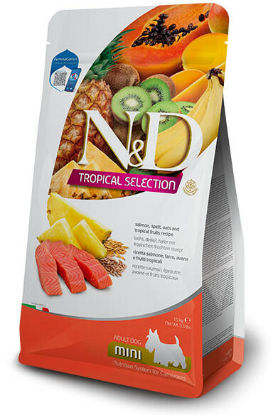 Ez a teljes értékű és kiegyensúlyozott száraztáp kifejezetten felnőtt kistestű kutyák számára készült, lazaccal, magas minőségű gabonafélékkel és trópusi ízekkel . A lazac jól emészthető, Omega-3 zsírsavakban gazdag, melyeknek gyulladáscsökkentő hatásuk van, segítik fokozni az agyműködést, és fenntartani a bőr és szőrzet egészséges állapotát. Öt trópusi