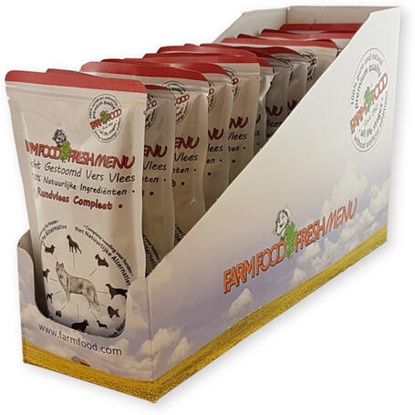 1.5kg A Farmfood Fresh Menu egy teljes értékű, kíméletesen párolt friss marhahúst tartalmazó nedveseledel alutasakos kiszerelésben minden kutya számára, kölyköktől az idősekig. Állati eredetű összetevői az Európai Unió által emberi fogyasztásra jóváhagyott állatokból származnak. A Farm Food Friss Menü tiszta marhahúsból, marhapacalból és marhaszívből készült, a