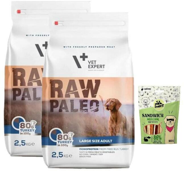 VETEXPERT Nyers Paleo Adult Large 2,5kg - Termékleírás Teljes értékű, teljes értékű és kiegyensúlyozott eledel felnőtt, nagytestű kutyák számára 1,5 éves kortól. A pulykahús 100 grammonként 80 g könnyen emészthető fehérje- és energiaforrást biztosít, amelyre minden kutyának szüksége van. A friss hús magas tartalma garantálja a magas ízletességet. Összetétel Puly