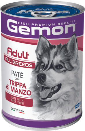 9.6kg Gemon Dog Adult Paté with Beef teljes értékű marhahúsos pástétom felnőtt kutyák számára alutálkában vagy konzervben. Minden fajta számára ideális, ízletes recept.