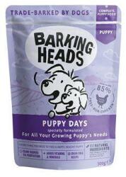 BARKING HEADS Puppy Days kapszula 300g, Složení: 85 % kuře (60% kuřecí maso, 25 % kuřecí vývar), batáty, mrkev, cuketa, lososový olej, slunečnocový olej, vojtěška, mořské řasy, petržel, celer, kořen čekanky, kopřiva, kurkuma, anýz, minerály Analytické složky (%): proteiny 10%, tuky a oleje 7%, vláknina 0,6%, hrubý popel 2%, vlhkost 79% Nutriční doplňkové látky (na k