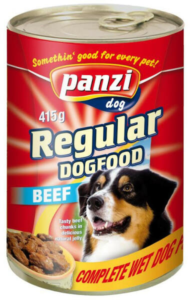 Panzi konzerv eledel kutyáknak - Marhahúsos kiszerelés: 1240 gTeljes értékű kutyaeledel – Marhahúsos Ízletes marhahúsos falatok finom szószban Összetétel: Hús és hússzármazékok min 4% marhahússal, növényi származékok, ásványi anyagok Analitikai összetevők: Nedvesség: 80%, Nyers fehérje 6,5%, Olaj és nyers zsír 4%, Nyers hamu 3,5%, Nyers rost 0,3% Tartósítószerekt