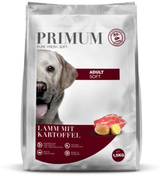 PRIMUM bárány burgonyával Kiváló minőségű félnedves ételünk extra sok friss bárányhússal - természetesen gabonamentes. A PRIMUM bárány burgonyával mindennel ellátja állatát, amire szüksége van. A több mint 50%-ban élelmiszergyártásból származó bárányhús, válogatott alapanyagok, például burgonya, alma és borsó, valamint számos értékes fűszernövény, kivál