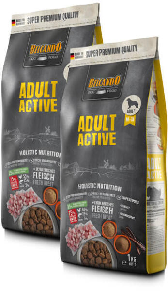 Adult Active 1kg Csak a legjobb nyersanyagokat használjuk: a könnyen emészthető baromfihús, a lenmag értékes Omega 3 zsírsavai és a rendkívül egészséges jánoskenyér, amely a fontos csersavakat és egy sor létfontosságú anyagot biztosít, teszik a BELCANDO® ADULT ACTIVE-ot teljesértékű táplálékká. A fehérje- és zsírtartalom az aktív kutyák energiaszükségletéhez let