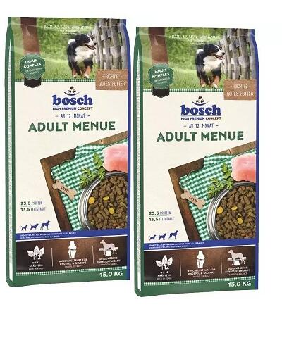 BOSCH Adult Menue Poultry 15kg - Termékleírás Az Adult Menue teljes értékű eledel minden fajta felnőtt kutyák számára, baromfival. Kiváló minőségű eledel normál aktivitású kutyák számára. A Bosch kutyatáp kizárólag speciálisan válogatott összetevőket és alapanyagokat használ, amelyeket gondos eljárással dolgoztak fel, hogy ízletes, optimálisan kiegyensúlyozott é