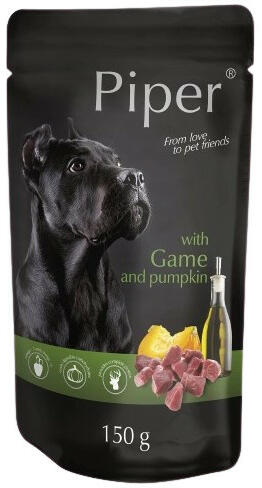 Teljes értékű gabonamentes nedves eledel vadhússal és sütőtökkel, megfelelő valamennyi felnőtt kutya számára A Piper vad-tök alutasakos eledel könnyen emészthető sütőtököt tartalmaz, mely pozitív hatást gyakorol az emésztőrendszerre. A lenmag olaj az alapvető telítetlen zsírsavak természetes forrása, hozzájárul a szőrzet kiváló minőségéhez és pozitív hatást