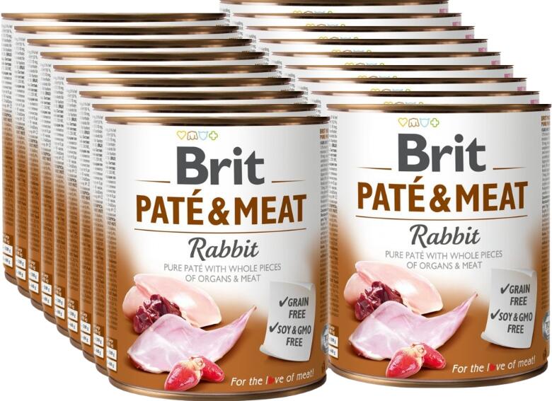 A Brit Pate&Meat Rabbit teljes értékű és kiegyensúlyozott táplálást biztosít. 70% nyúl és csirke Összetétel: 27% nyúl, 24% csirke, 8% egész csirkemáj, 12% szív és tüdő, 28,5% húsleves, 1% ásványi anyagok, 0,5% lazacolaj Elemzés: nyersfehérje 11%, zsírtartalom 9%, nedvességtartalom 75%, nyershamu 6,5%, nyersrost 0,4% , Használati utasítás: A tápot szobahőmérsék