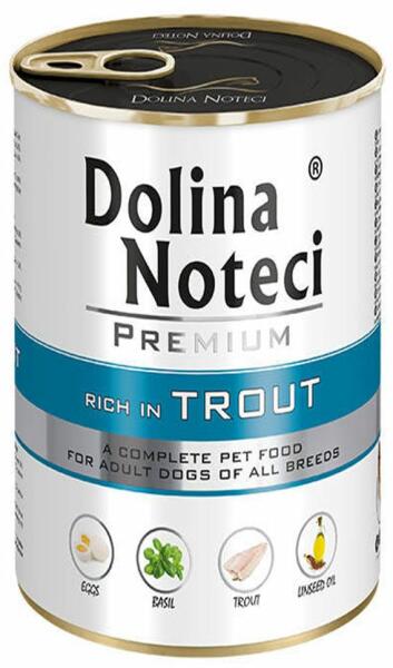 A Dolina Noteci Premium teljes értékű eledel pisztránggal, minden fajta felnőtt kutyának. a pisztráng zsenge és sovány húsa omega-3 zsírsavakat tartalmaz, amelyek fontos szerepet játszanak a szív- és keringési betegségek megelőzésében a pisztrángfaggyú értékes EPA-val és DHA-val egészíti ki az étrendet minden szükséges tápanyagot, vitamint és ásványi anyagot tartal