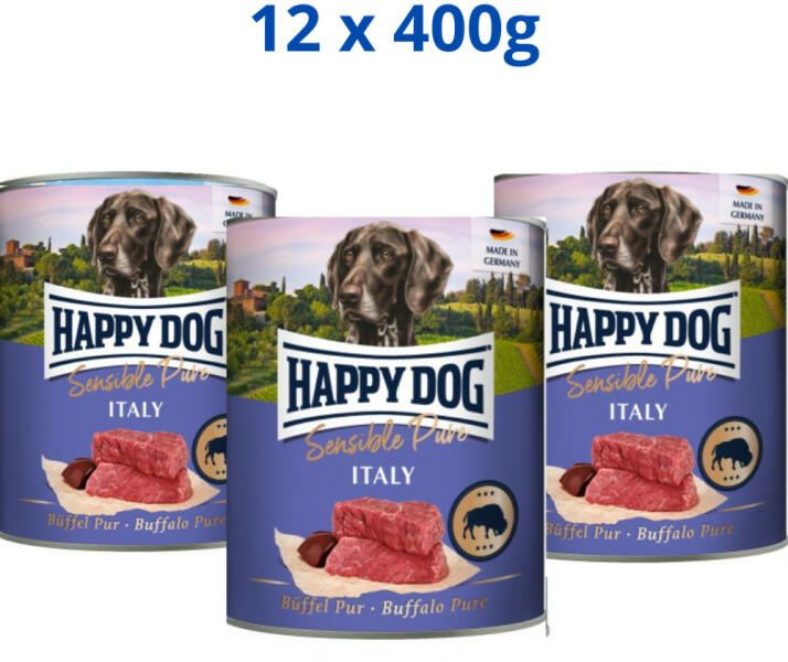 Happy Dog Büffel Pur - Bivalyhúsos Happy Dog Italy konzerv Egyféle fehérje-100%Bivaly Eleség intolerancia és érzékeny emésztés esetén is kiváló