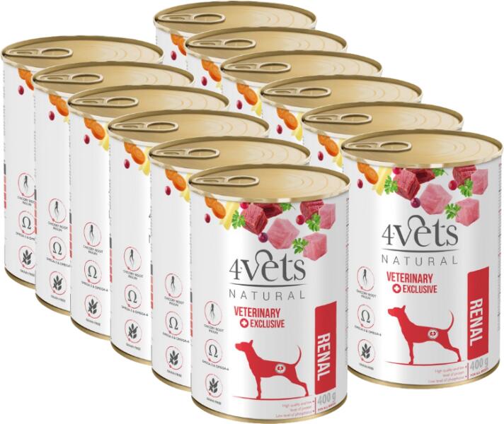 Teljes értékű diétás eledel krónikus vagy krónikus veseelégtelenségben szenvedő kutyák számára. Gyógyulás után és idősebb kutyáknál a megelőzés része lehet. A csökkentett foszfor- és nátriumtartalom, valamint a korlátozott mennyiségű, jó minőségű fehérje pozitívan hat a veseműködésre. Az étrendben található n-3 és n-6 zsírsavak hozzájárulnak a gyulladá