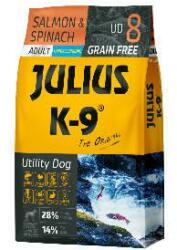 Julius K-9 Utility Dog Hypoallergenic Salmon, spinach Adult (lazac, spenót) száraztáp - Felnőtt kutyák részére (10kg) A UtilityDog sorozat receptúráinak kialakítása során a fókusz az úgynevezett engedelmességi munkakutyák, valamint az átlagos aktivitású kutyák igényeinek kielégítésén volt. Ezen kutyák számára a táplálásban a legfontosabb a kiegyensúlyozott idegrends