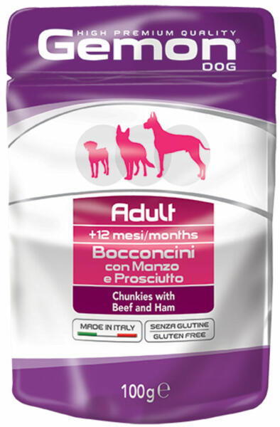 A marhahússal és sonkával készült chunkies teljes értékű eledel 12 hónapos és idősebb felnőtt kutyák számáraFinom recept Olaszországban készült ideális minden fajtáhozHús és húsipari termékek 45 ebből marhahús min 6 sonka min 6 ásványi anyagokNyersfehérjék 85 nyersolajok és zsírok 65 nyersrost 05 nyershamu 2 nedvesség 79