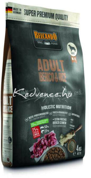 Normál aktivatú kutyáknak Igazi ibériai disznóhús a fő fehérje forrás Értékes chia magokat tartalmaz Redkivűl jól emészthető összetétel M-től XL kutyus méretig Belcando Adult Iberico Sertéshús és Rizs Különleges kulináris élmény kutyáknak Az extra friss iberico sertéshús és a könnyen emészthető rizs kombinációja egyedülálló ízélménnyé teszi ezt a receptet
