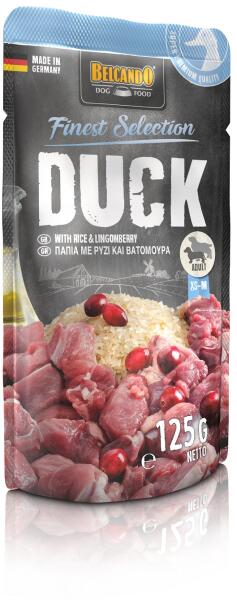 Kacsahús rizzsel és vörös áfonyával 125g BELCANDO® FINEST SELECTION kutyaeledelKiváló receptúrák egy etetési méretben csomagolva. Szaftos, finom hozzávalókkal ízesített, kíméletesen főzött hús, tasakba kiporciózva. A hidegen sajtolt bogáncsolaj létfontosságú telítetlen zsírsavakat ad hozzá. A BELCANDO® FINEST SELECTION rendkívüli ízletességének és hasznosíthat