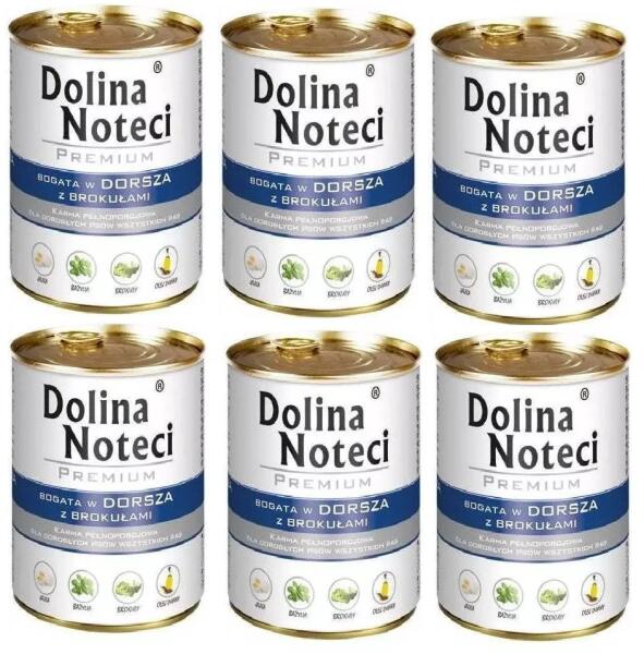 Dolina Noteci Prémium tőkehal brokkolival 400g - Leírás Teljes értékű eledel tőkehallal és brokkolival minden fajta felnőtt kutyának. A tőkehalból származó hús és nyersanyagok különösen lizin és arginin, valamint n-3 többszörösen telítetlen zsírsavak forrása. A tőkehalból származó nyersanyagokban található zsír EPA-val és DHA-val egészíti ki a kutya étrendjét
