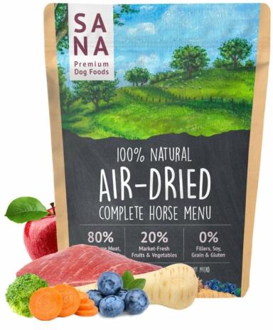 SANA szárított BARF Menü - Ló 1 kg - 9900 Összetevőkről részletesen: E termék is gabona és gluténmentes. A benne található fehérje kizárólag állati eredetű, a megfelelő szénhidrátbevitelt pedig nem gabona, hanem más gyümölcsök biztosítják, ezzel jobban illeszkedik a kutyák természetes, háziasításuk előtti időkre jellemző étrendjéhez. Erre azért van szükség,
