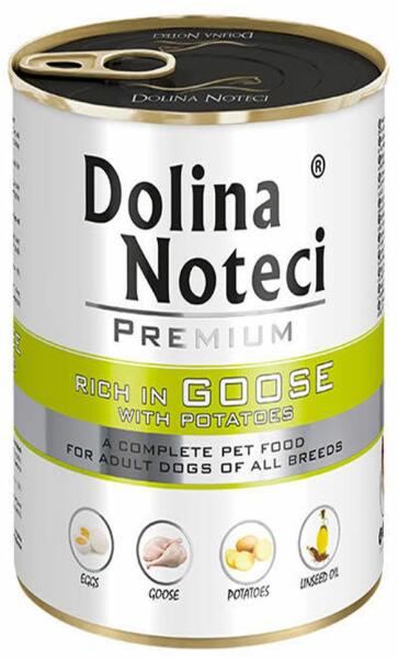 A Dolina Noteci Premium teljes értékű eledel libamájjal és burgonyával, minden fajta felnőtt kutyának. A libahús vasat és szelént tartalmaz - olyan ásványi anyagokat, amelyek biztosítják a megfelelő vérműködést, emellett értékes aminosavforrás, metionin és cisztein. a libazsír az n-6-os családba tartozó, többszörösen telítetlen zsírsavakat tartalmaz a burgonya A- é