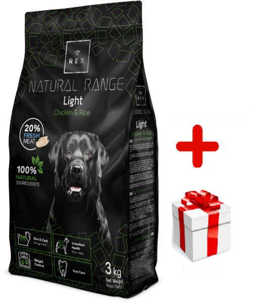 Rex Natural Range Light csirke és rizs 3kg Teljes értékű eledel felnőtt kutyáknak 7 éves kortól vagy túlsúlyra hajlamos kutyáknak. ÖSSZETEVŐK : Friss csirke (20%). Árpa. Rizs. Baromfiliszt. Búza. Répapép. Kukoricaglutén Hidrolizált baromfimáj. Baromfiolaj Halolaj Lenmag Élesztő Ásványi anyagok. Cikória (FOS 0,05%). Tojás Mannán oligoszacharidok (MOS 0,05%). Citrusfélék
