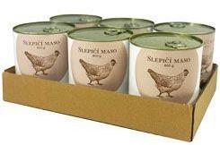BOHEMIA Csirkehús saját levében SIX PACK 6x800g, Becsületes konzerv, kivételesen magas diétás csirkehústartalommal - 70%. a doboz megfelel az úgynevezett "single protein" szabványnak, ami azt jelenti, hogy csak egyféle fehérjét - csirkehúst - tartalmaz. Ezenkívül csak növényi húslevest és hidegen sajtolt lenmagolajat tartalmaz. a Bohemia Pet Food konzerv előnyei:rendkívül ma