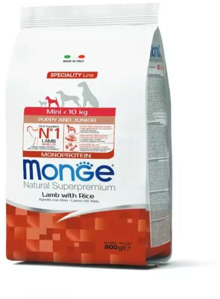 Monge Dog Speciality Line Monoprotein Puppy Mini - Lamb, RiceTeljes értékű szárazeledel kölyök kutyák számára. Kutyája egészsége garantált a kiváló minőségű alapanyagoknak és az olasz szakértői kutatásnak köszönhetően. Fő összetevője a bárány, ami könnyen emészthető és a hozzáadott friss húsnak köszönhetően nagyon ízletes. A termék xylo-oligoszacharideket