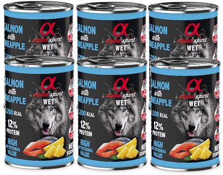 Alpha Spirit lazac áfonyával 400g - Termékleírás Az Alpha Spirit Salmon with Berries egészséges, gabonamentes nedves eledel minden korú és fajtájú kutya számára. Egyedülálló termékünk 92%-ban friss halat tartalmaz, amely a legmegfelelőbb táplálék kutyája számára, valamint 4%-ban gyümölcsöt. Vitaminokkal és tápanyagokkal is gazdagított, hogy támogassa kutyája létfo