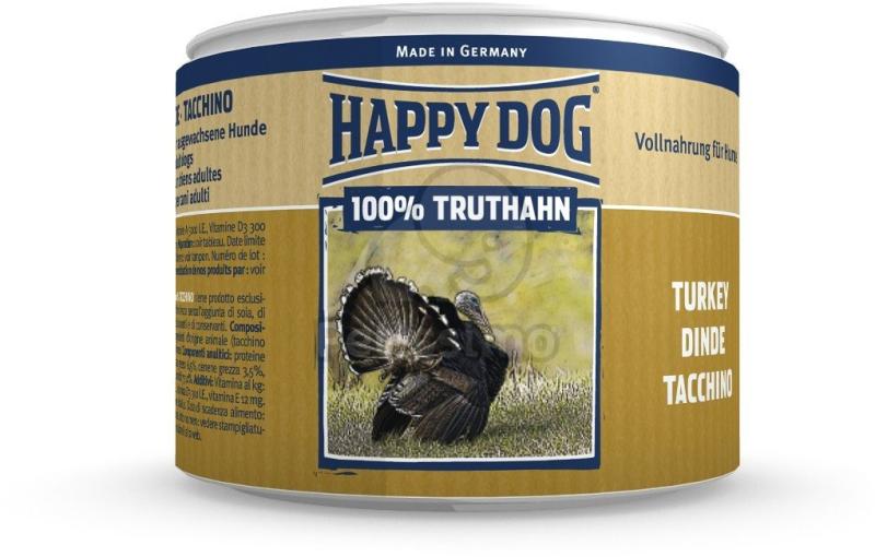 A Happy Dog Truthahn Pur (Pulyka) egy ízletes, teljes értékű nedveseledel felnőtt kutyák számára. Monoproteines eledel. 100% pulykahús. Egyfajta fehérjét tartalmaz. Kiválóválasztás, eliminációs diétába is. Ideális eleség tápláléktoleranciával, vagy allergiával küzdő kutyák számára. Kizárólag friss vágású házi pulyka húsából készül. Szóját, növényi adal