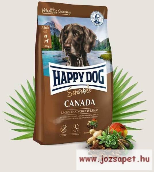 Happy Dog Sensible Canada gabonamentes kutyatáp 1kg Kiegyensúlyozott fehérjetartalmú (bárány-lazac-nyúl) gabonamentes, gluténmentes szuperprémium táp közepes és nagytestű kutya kíméletes táplálásához. Gabonamentes Válogatott fehérjék Érzékeny és aktív felnőtt kutyák számára Magasabb hústartalom Happy Dog Sensible Canada gabonamentes kutyatáp Kiegyensúlyozott fehér