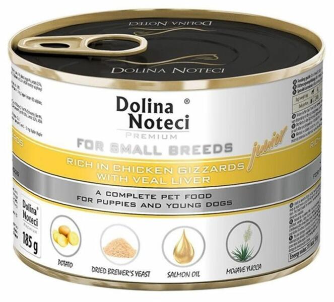 A Dolina Noteci Premium Junior Small Breed teljes értékű, gabonamentes nedves eledel fiatal, kistestű kutyák számára, csirkecombbal és borjúmájjal. A csirkehús és a belsőségek cink- és szelénforrást jelentenek - ezek az ásványi anyagok fontos szerepet játszanak a szervezet védekezőképességének serkentésében A borjúmáj szelént, vasat és rezet biztosít az eledel össz