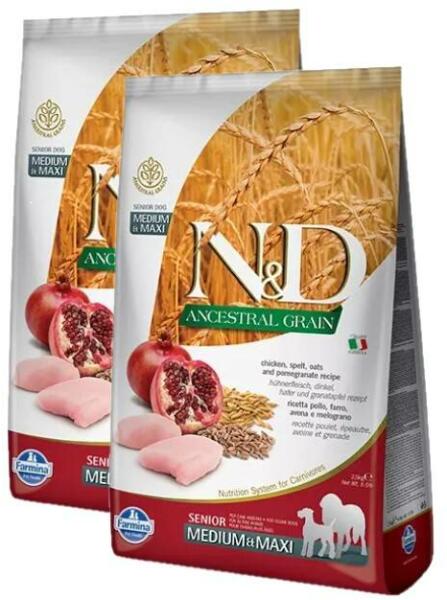 Farmina N&D Ancestral Grain Canine Senior Medium&Maxi Chicken&Pomegranate 12kg - Termékleírás Teljes értékű eledel a közepes, nagy és óriás fajtájú idős kutyák számára. Recept csirke, tönkölybúza, zab, gránátalma. Négylábú kedvenceink húsevő természete mindig is vezérelte kutatásainkat a számukra legmegfelelőbb és legtermészetesebb takarmányozási rend