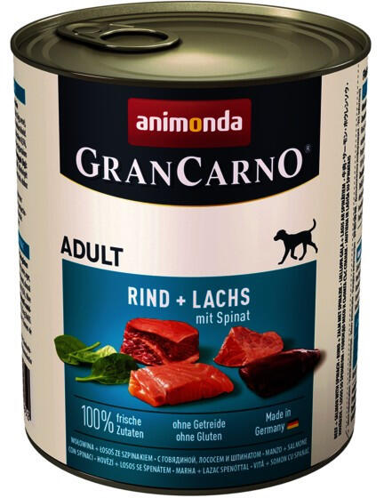 GranCarno® Adult lazaccal és spenóttal – a tökéletes választás felnőtt kutyája kiegyensúlyozott, ízletes és egészséges étrendjéhez! Ez a prémium kutyaeledel kifejezetten 1-6 éves kutyák számára lett kifejlesztve, és kielégíti szőrös barátja minden fontos táplálkozási szükségletét. A GranCarno® Adult lazaccal és spenóttal gondosan válogatott, friss alapanyagok
