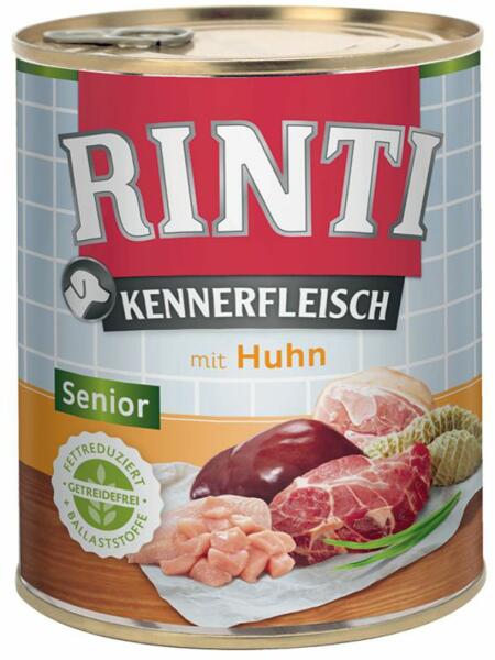 RINTI Senior konzerv idősebb kutyák számára csirkéből. teljes értékű eledel idősebb kutyák számára teljes hús és belsőség tartalom 66% könnyen emészthető csirke Öss zetevők: hús és állati melléktermékek (15% csirke), növényi melléktermékek (1.2% céklarostok), ásványi anyagok, olajok és zsírok (0.5% lenmagolaj) Anali tikai összetevők: fehérje 9%, nedvességtar