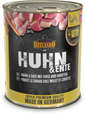 4.8kg Belcando konzerv csirke- és kacsahús kölessel és sárgarépával: kiváló minőségű konzerves nedves eledel kutyád számára. A Belcando konzervek természetes összetevői ellenőrzöt t német gazdaságokból származnak. A készítés során nem használnak húspépet, hanem csak gondosan megfőzött darabos minőségi hús kerül a konzervekbe. Telítetlen zsírsavakban gazdag é