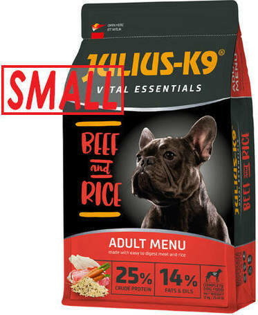 JULIUS K-9 12kg Adult Vital Essentials Small (marha, rizs) száraztáp - felnőtt kutyák részére (12kg) JULIUS-K9 VITAL ESSENTIALS 12kg ADULT BEEF&RICE Teljesértékű szárazeledel felnőtt kutyák részére. A JULIUS-K9 a magyar tulajdonú világsikerű márka bővítve a márka kínálatát, az állateledel piacon is igyekszik megbízható minőséget biztosítani az Ön Kedvence számá