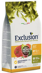 Egyetlen, dehidratált állati fehérjeforrással (marhával) készülő, teljes értékű, gabonamentes táplálék közepes testméretű (10-30kg-os) felnőtt kutyák számára. 1 éves kor felett. Az Exclusion Mediterraneo Monoprotein Formula Beef egyetlen állati fehérjeforrással készül, mely csökkenti az ételintolerancia kockázatát, miközben teljes értékű, kiegyensúlyozott étren