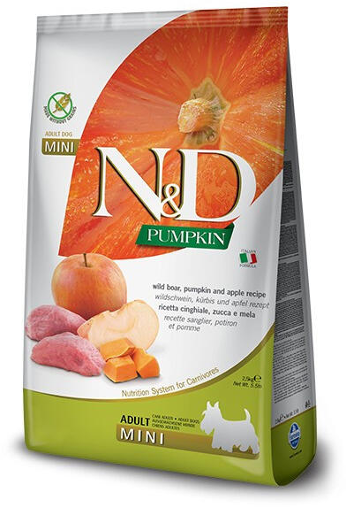 Teljes értékű, gabonamentes eledel, kistestű felnőtt kutyáknak, vaddisznóval, sütőtökkel és almával. ÖSSZETEVŐK: Friss, csontozott vaddisznó (24%), dehidratált vaddisznóhús (22%), borsó keményítő (20%), csirkezsír, dehidratált sütőtök (5%), dehidratált egész tojás, halolaj, borsó rost, szárított sárgarépa, szárított lucerna, inulin, fructooligoszaccharidok, man