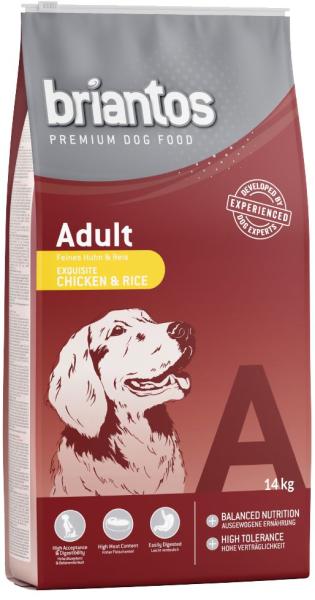 A Briantos Adult csirke & rizs minden normál aktivitású, felnőtt kutyának kiegyensúlyozott és magas fokon emészthető prémium szárazeledelt kínál. Speciális receptúrája a jól emészthető csirke és rizs pozitív tulajdonságait ötvözi kutyája hosszú és vitalitással teli életének szolgálatában. A Briantos kutyatápot tapasztalt táplálkozásszakértők fejlesztették