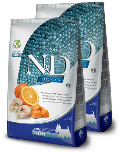 Borsókeményítő, sütőtök, tőkehal, narancs. Teljes értékű eledel felnőtt kutyáknak. Összetétel: Friss tőkehal (25%), dehidratált tőkehal (25%), borsó keményítő (20%), halolaj, dehidratált sütőtök (5%), szárított cukorrépapép, borsó rost, szárított sárgarépa, szárított lucerna, inulin, frukto-oligoszacharidok, mannán-oligoszacharidok, dehidratált édes narancs