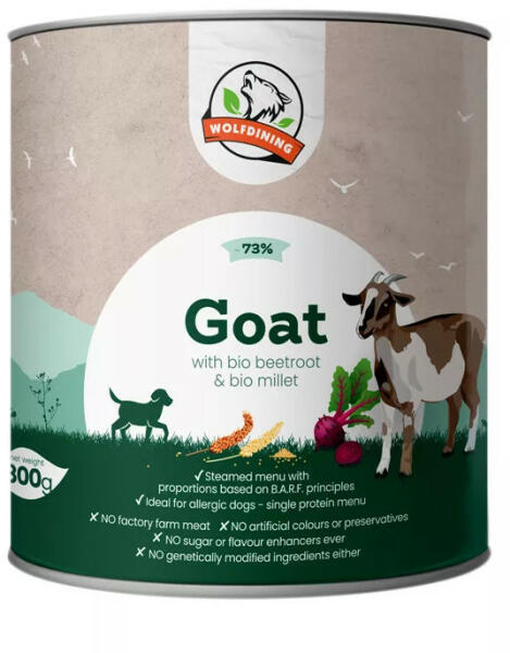 73% kecskehús os párolt menü bio céklával és bio kölessel gazdagítva, bio fekete köménnyel. Kizárólag friss hús, bio zöldség és gyümölcs feldolgozásával , amelyeket kontrollált, alacsony hőmérsékleten párolnak készre az értékes tápanyagok és az ízek megőrzéséért. Teljes értékű menü felnőtt kutyáknak. A kutyák ragadozó emésztőrendszere legkönnyebben a h