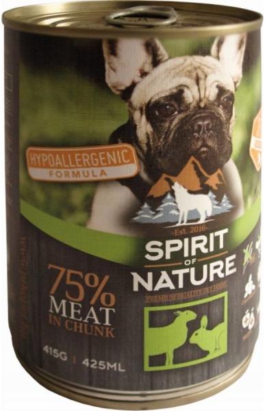A Spirit of Nature bárányos-nyulas konzerv kitűnő választás allergiás vagy érzékeny gyomrú kutyák etetésére. Hogy miért is? A bárányhús és a nyúl is a hipoallergén fehérjeforrások közé tartoznak. Manapság egyre több kutya érzékeny vagy súlyosabb esetben allergiás például a csirkehúsra. Számukra megfelelő lehet a Spirit of Nature konzervek adagolása, ugyanis nem