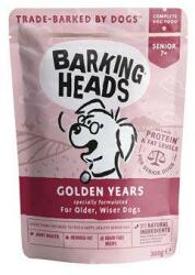 BARKING HEADS Golden Years kapszula 300g, Složení: 85 % kuře a losos (40% kuřecí maso, 25% kuřecí vývar, 20 % losos), batáty, mrkev, cuketa, špenát, rajčata, lososový olej, slunečnicový olej, extrakt ze slávky zelenoústé, mořské řasy, vojtěška, petržel, celer, kořen čekanky, kopřiva, kurkuma, anýz, zelený čaj minerály Analytické složky (%): proteiny 9%, tuky 6%, vl