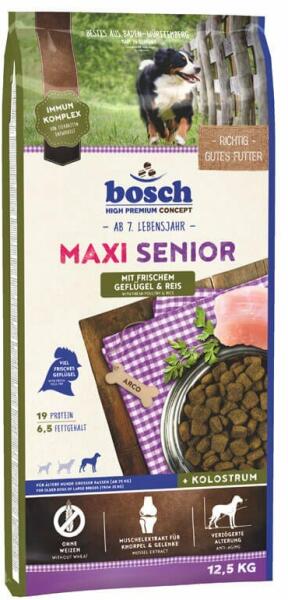 Gyártó: Bosch Modell: Senior Maxi Adult Chicken & Rice 12,5 kg Leírás: Teljes értékű szárazeledel idősebb, nagytestű kutyák számára. 7/8 éves kor után a kutyák szervezetében bizonyos változások mennek végbe. Az anyagcsere lelassul, ahogyan egyes belső szervek működése is. A recept alapja a baromfi, mint fehérjeforrás és a rizs, mint szénhidrátforrás. A baromfit sz