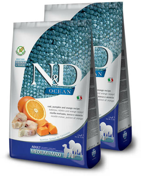 Borsókeményítő, sütőtök, tőkehal, narancs. Teljes értékű eledel felnőtt kutyáknak. Összetétel: Friss tőkehal (25%), dehidratált tőkehal (25%), borsó keményítő (20%), halolaj, dehidratált sütőtök (5%), szárított cukorrépapép, borsó rost, szárított sárgarépa, szárított lucerna, inulin, frukto-oligoszacharidok, mannán-oligoszacharidok, dehidratált édes narancs
